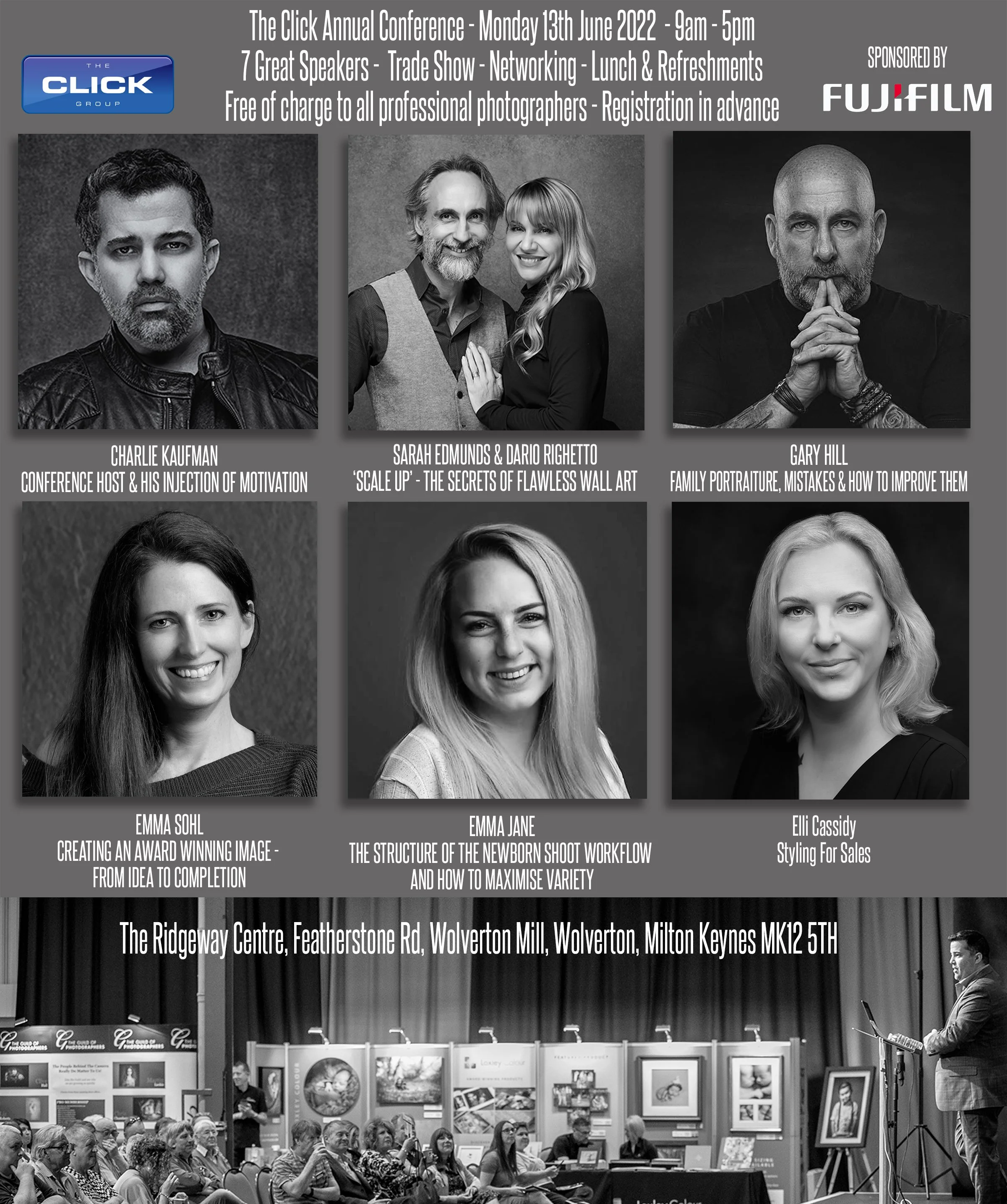 Hosted by our very own Charlie Kaufman, this year Click Conference is lined up to be an absolute blast for the UK photography industry, we have opened the Click Conference to the public after being a private group conference for over 25 years. This is the second year we have opened to the public and have exhibitors from some of the best brands in the industry including: